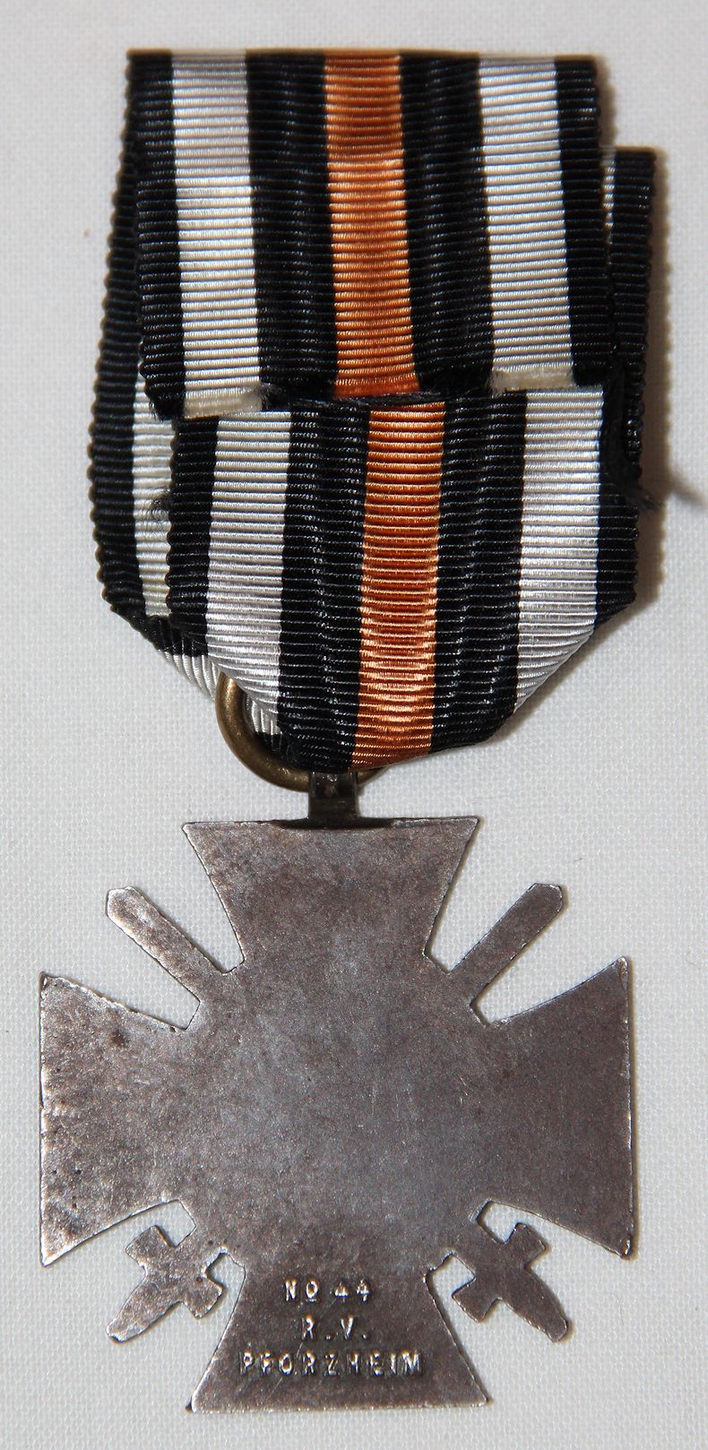 B287. GERMAN HONOR CROSS OF THE WORLD WAR 1914-1918 MEDAL. HALLMARKED “No 44 R.V. PFORZHEIM”. GOOD CONDITION. GUARANTEED ORIGINAL. FREE SHIPPING IN THE U.S.A. CLICK ON PHOTOS TO ENLARGE. ***SOLD***