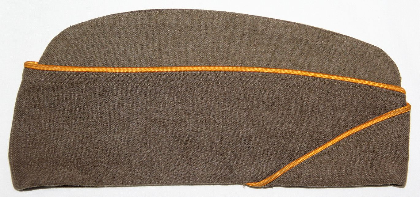 C070. WWII CAVALRY PIPED OVERSEAS GARRISON CAP. 1944 DATED QM TAG. SIZE 6 7/8. HAS A SOLDIER’S 4-DIGIT SERIAL NUMBER STAMPED INSIDE. SHOWS LIGHT USE AND WEAR. GUARANTEED ORIGINAL. FREE SHIPPING IN THE U.S.A. CLICK ON PHOTOS TO ENLARGE. ***SOLD***