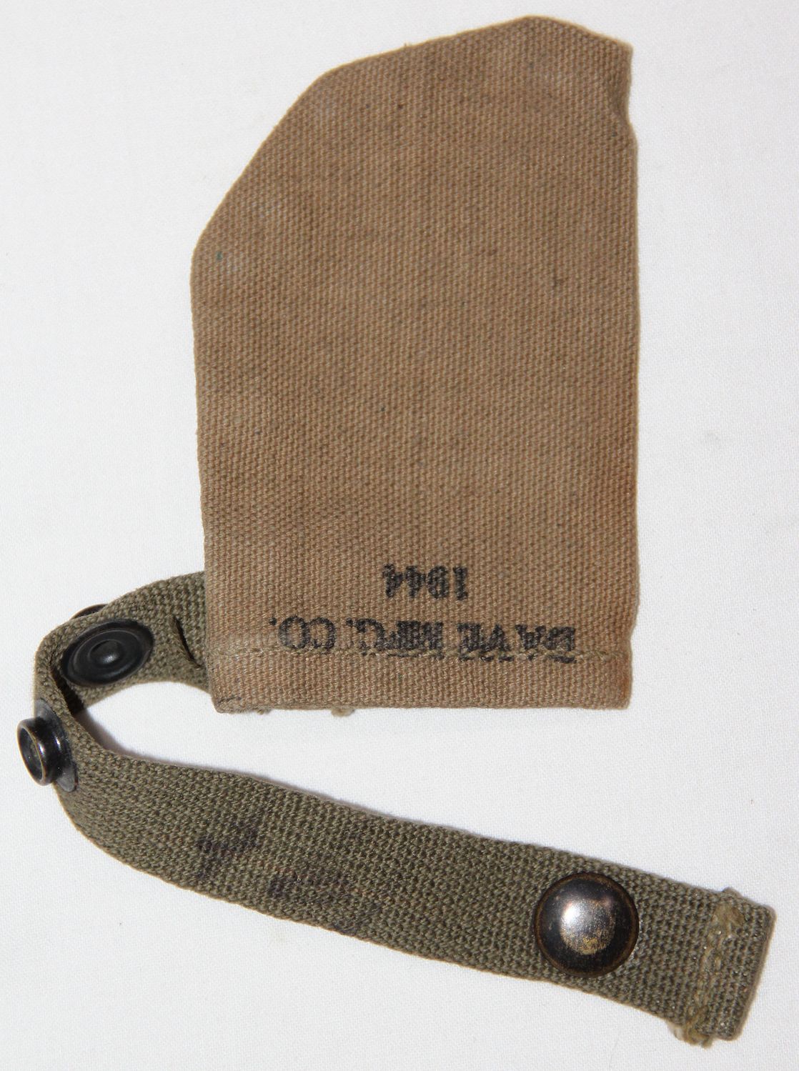 E320. WWII 1944 DATED LIGHT OD WEB RIFLE MUZZLE COVER. WELL MARKED. SNAP WORKS FINE. THERE IS AN OLD SURPLUS PRICE INKED ON THE STRAP. GUARANTEED ORIGINAL. FREE SHIPPING IN THE U.S.A. CLICK ON PHOTOS TO ENLARGE. ***SOLD***